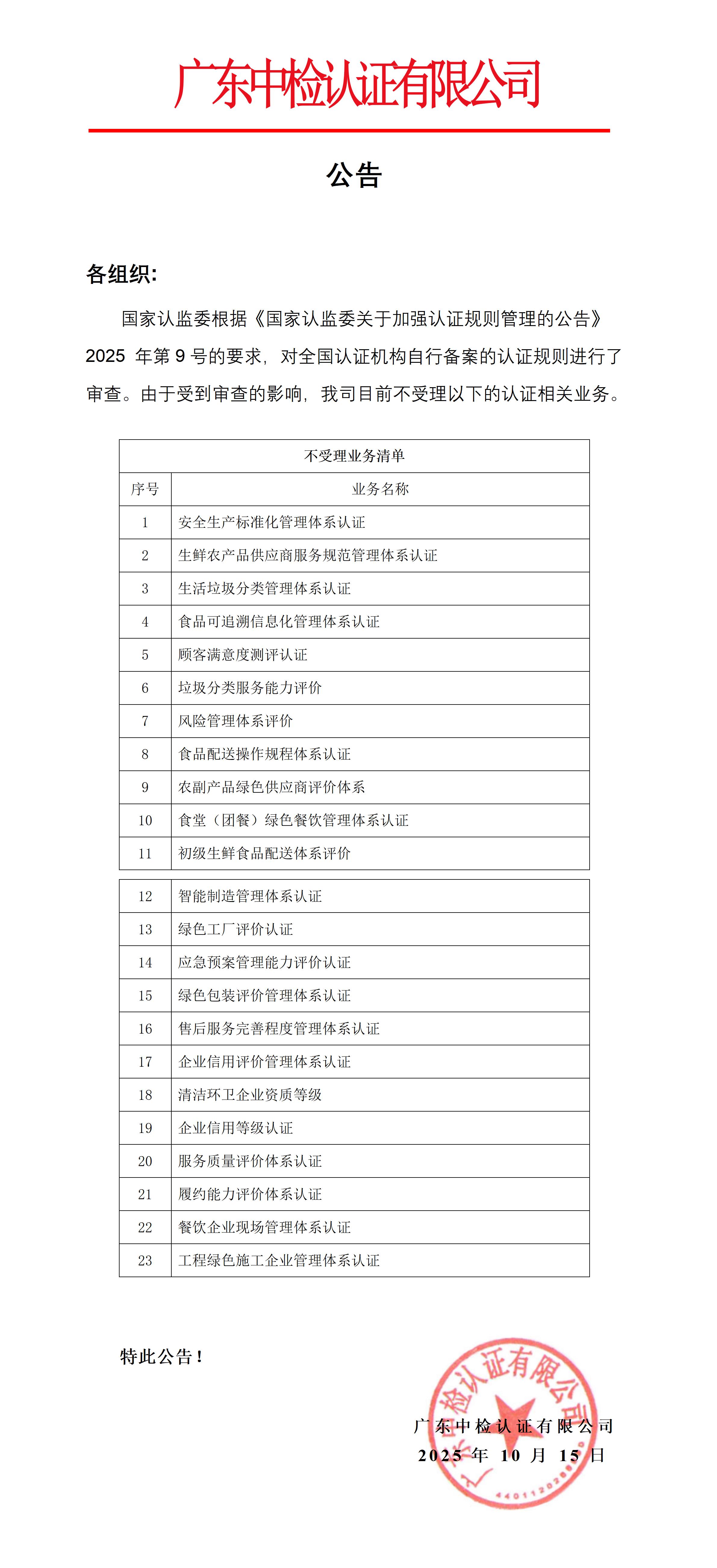 关于响应认监委2025年第9号公告 加强认证规则规范性管理要求的告知函